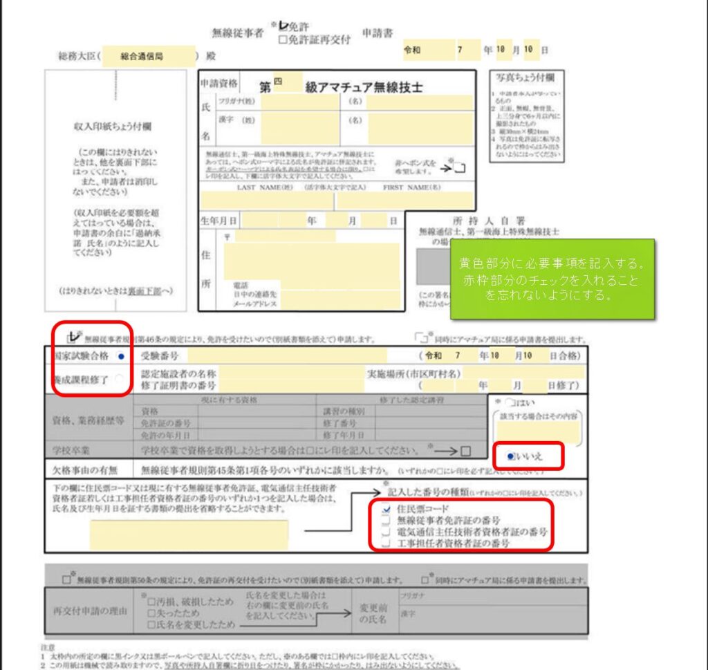 →合格通知と共に送られてくる従事者免許申請書テンプレートは使わない。