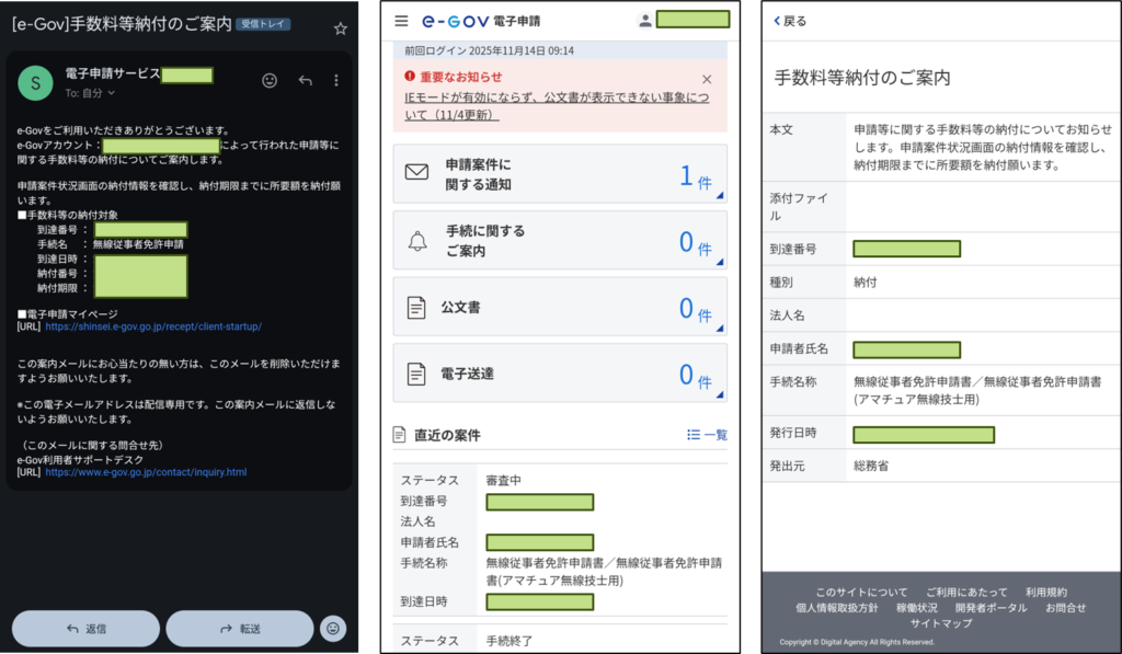 2025年11月xx日(xx)★無線従事者免許申請の手続終了・審査終了★手続終了